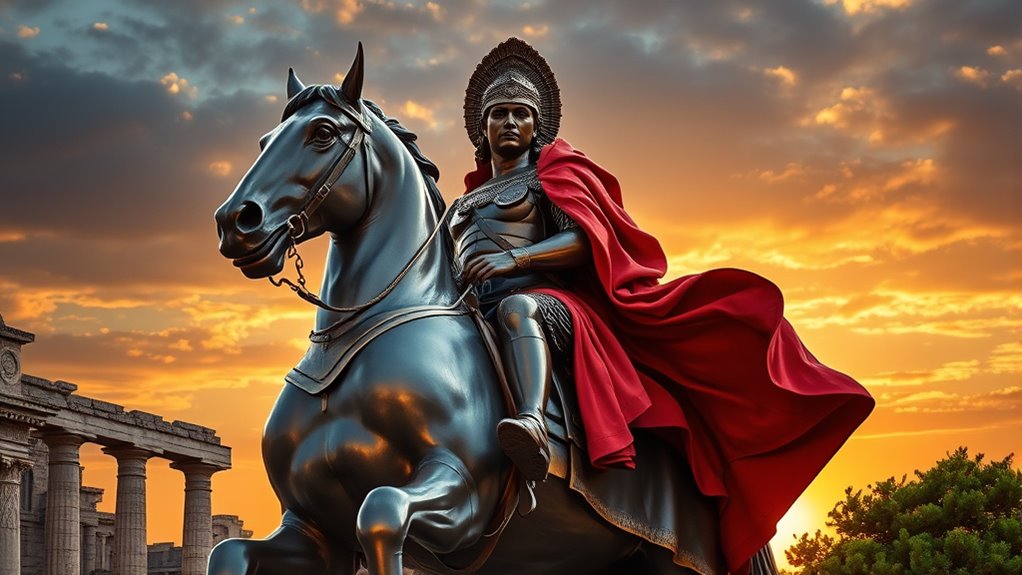 His ability to lead with charisma and vision helped him inspire loyalty among his troops, even in the face of hardships. His military genius and openness to cultural exchange are what made him legendary. You can appreciate how his strategies and cultural policies set the stage for a new era—one where military prowess and cultural understanding went hand in hand. In the end, Alexander’s legacy isn’t just about the vast territories he claimed; it’s about how he changed the face of history, blending myth and reality into a story of ambition, ingenuity, and cultural transformation.