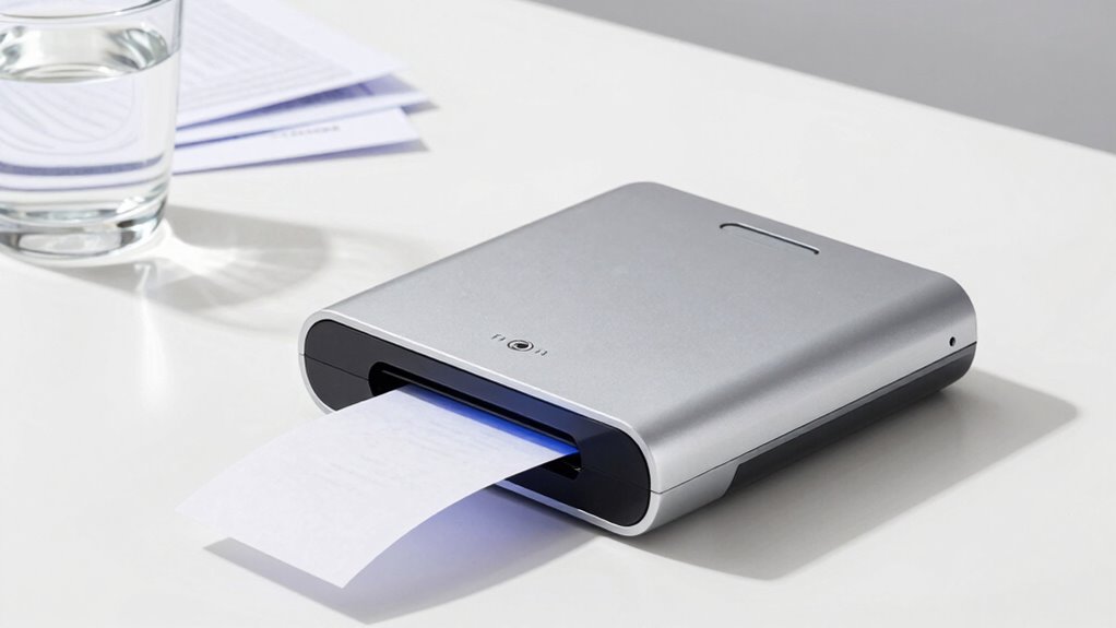 Data stored from receipt and document scanners is quite secure when you use features like data encryption and cloud storage. Both types of scanners often include encryption to protect your information during transfer and storage. Cloud storage adds an extra layer of security, allowing you to access your data safely from anywhere. Just make certain you choose reputable providers with robust security measures to keep your sensitive information protected.