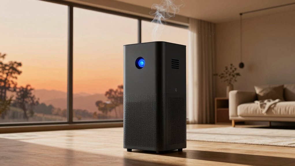 When choosing an air purifier for wildfire smoke, focus on models with high CADR ratings and activated carbon filters. These features work together like a well-orchestrated team, capturing smoke particles and absorbing harmful gases. Remember, a good purifier is like a sturdy shield, protecting your indoor air quality from the relentless assault of wildfire smoke. By selecting the right one, you create a safe haven, making your indoor space as breathable and fresh as a forest after a rainstorm.