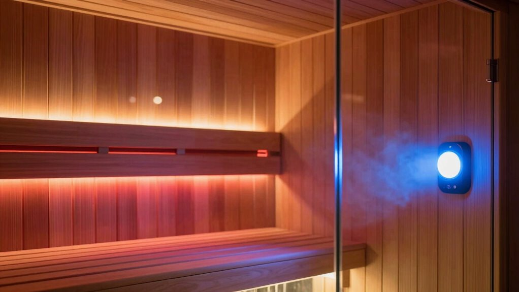 You’ll find that installation complexity varies between the sauna types, with full spectrum saunas often requiring more intricate setup due to their additional features. Space requirements are similar, but full spectrum models might need slightly extra room for proper ventilation and safety clearance. Make sure to check the manufacturer’s guidelines for each type, as both need a suitable power source and adequate space for safe, efficient operation.