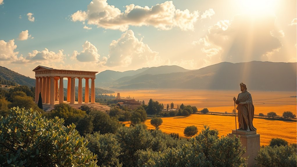 As you explore Kronos’s Golden Age, you realize it’s like stepping into a world where happiness and abundance overflowed endlessly. You can’t help but feel awe at a time when gods and mortals thrived in harmony, untouched by chaos. This era isn’t just a myth; it’s a dazzling reminder of paradise lost, a story so powerful that it’s etched into the very fabric of history. Embrace it, for such moments are rare and legendary.