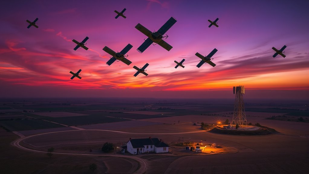 You might think satellite internet will completely replace terrestrial networks, but it’ll more likely complement them. As satellite latency improves, it can handle remote areas where terrestrial signals struggle. However, there’s potential for terrestrial interference, especially in densely populated regions, which could cause disruptions. You’ll notice faster, more reliable internet everywhere, but coexistence means managing overlapping signals to guarantee both systems work seamlessly without interference.