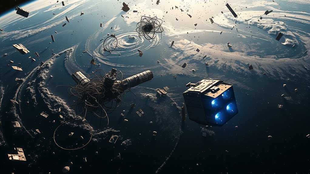 As you watch the skies, it’s no coincidence that efforts to clear space junk are gaining momentum just as satellite traffic surges. The timing feels right, almost inevitable, that we’re finally tackling this debris crisis. You realize that in a world of constant change and endless possibility, it’s the small steps—like removing debris—that make the biggest difference. Because when it comes to protecting our future in space, every piece counts.