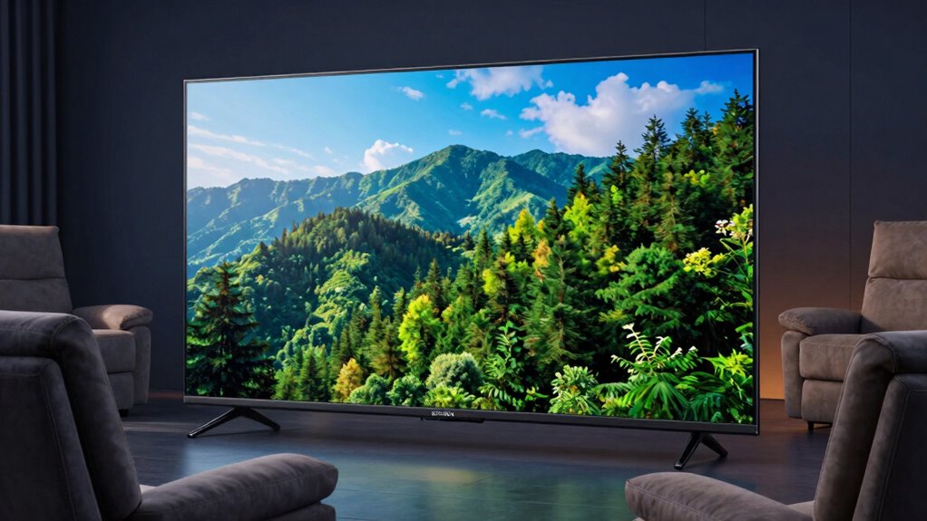 Did you know that 85% of viewers say color accuracy greatly enhances their cinematic experience? I believe LG and Sony lead in cinematic color accuracy. LG’s OLED panels boast superb color precision, while Sony’s XDR technology offers vibrant, true-to-life hues. These brands consistently receive top reviews for delivering stunning, movie-like visuals. If you’re after immersive color, I’d recommend exploring their latest 4K models for a truly cinematic experience.