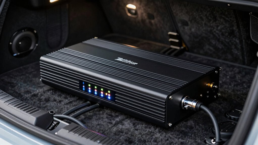 Think of your 5-channel amplifier as the heart of your car’s sound system—it needs just the right beat. The ideal power rating depends on your speakers’ power handling and your volume desires. Usually, I recommend matching the amp’s RMS power with your speakers’ RMS ratings, then adding a little extra for headroom. For most setups, around 50-75 watts per channel strikes a perfect harmony between clarity and punch.