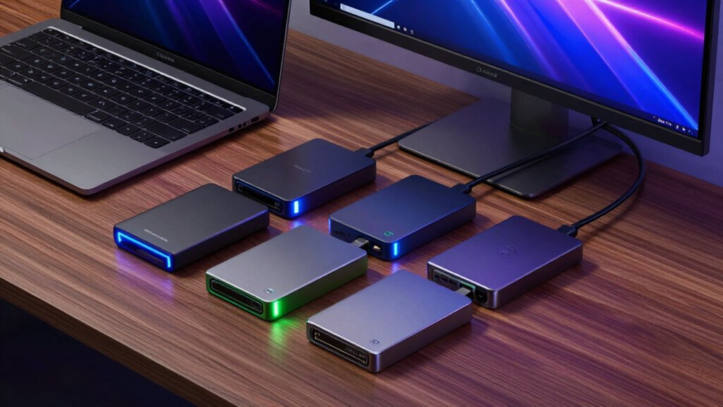 In 2026, I recommend checking out the 14 best external SSDs for Mac, including options like the Samsung T7, Crucial X10, SanDisk Extreme PRO, and Lexar. These drives offer fast transfer speeds, rugged durability, and seamless compatibility with Mac systems. Whether you’re after high capacity, security features, or portability, there’s something for everyone. Keep exploring as I’ll guide you through the top choices and what makes each one stand out.