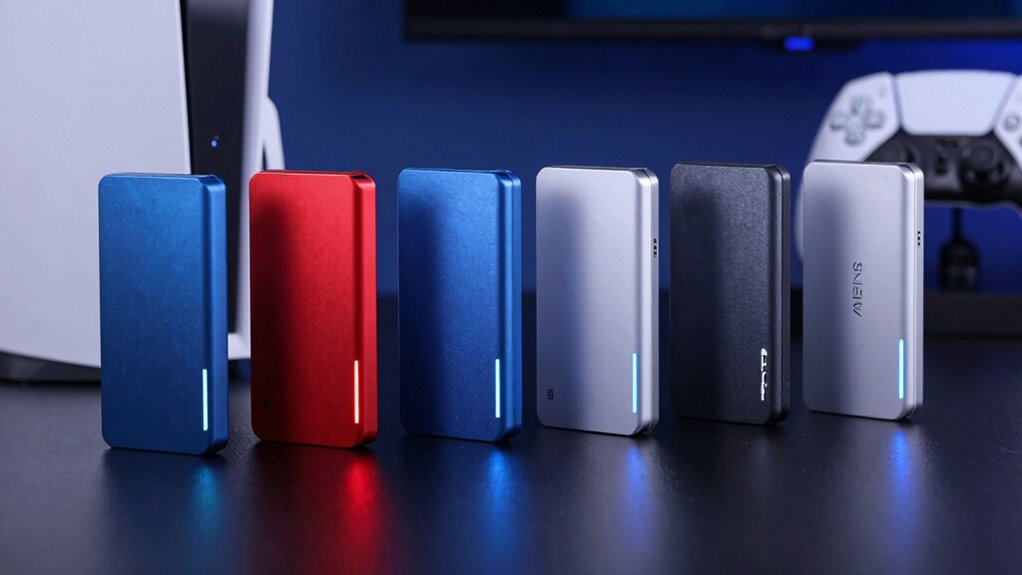 If you’re looking for the best external SSDs for PS5 in 2026, I recommend the Buffalo 1TB for its versatility, the Lexar ES3 1TB with quick transfers, the Crucial X10 Pro 4TB for large storage, the Samsung T7 1TB for speed, and the SanDisk 2TB Extreme for durability. Each offers fast performance, solid security, and durability. Want to discover which one suits your gaming style? Keep exploring, and you’ll find the perfect match.