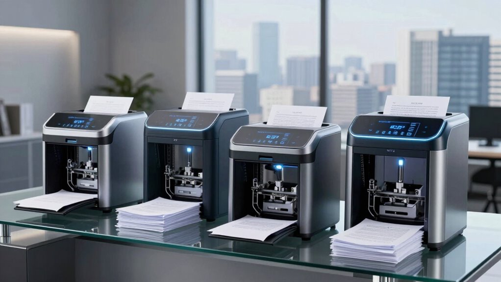 In wrapping up, I urge you to prioritize precision, power, and practicality when choosing your paper shredder. Remember, a sturdy shredder not only safeguards sensitive information but also simplifies your security routine. By considering capacity, cut type, and convenience, you’ll confidently choose a shredder that’s both reliable and robust. Ultimately, a well-selected shredder guarantees your legal documents are securely and swiftly shredded, saving you stress and strengthening your security stance.