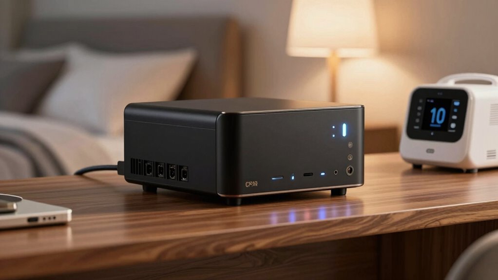 I’d recommend a battery capacity of at least 20,000mAh for reliable CPAP backup. Imagine waking up during a storm, worried about your sleep. A larger capacity guarantees your device runs smoothly through power outages, giving you peace of mind. Don’t settle for less—choose a power station with enough juice to keep your therapy uninterrupted, especially when it matters most. Trust me, it’s worth the extra capacity.