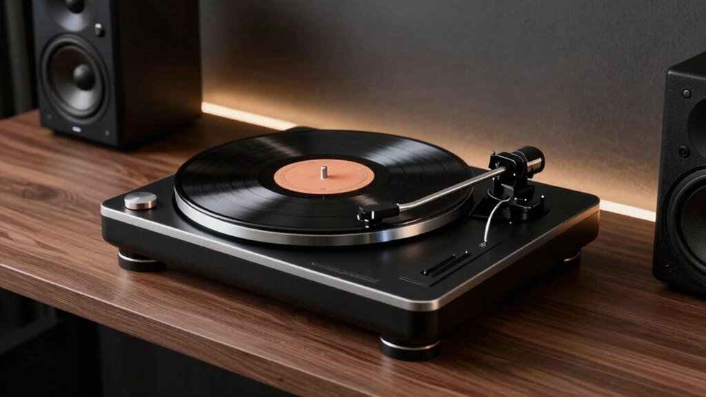 I’d say the typical price range for premium turntables with speakers in 2026 is around $1,000 to $3,000. I’ve noticed that these models offer exceptional sound quality, sleek designs, and advanced features. While some high-end options can go beyond that, most fall within this range, making them a worthwhile investment if you’re serious about your music experience. It’s all about balancing quality and budget for the best setup.