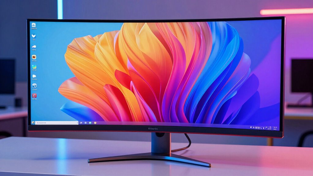 When choosing an ultrawide monitor for your Mac, I focus on compatibility, ensuring it works seamlessly with macOS and supports Thunderbolt or USB-C connections. I also prioritize the right size and resolution for my workspace, along with color accuracy for true-to-life visuals. Additionally, I look for ergonomic features and connectivity options that fit my workflow and comfort needs.