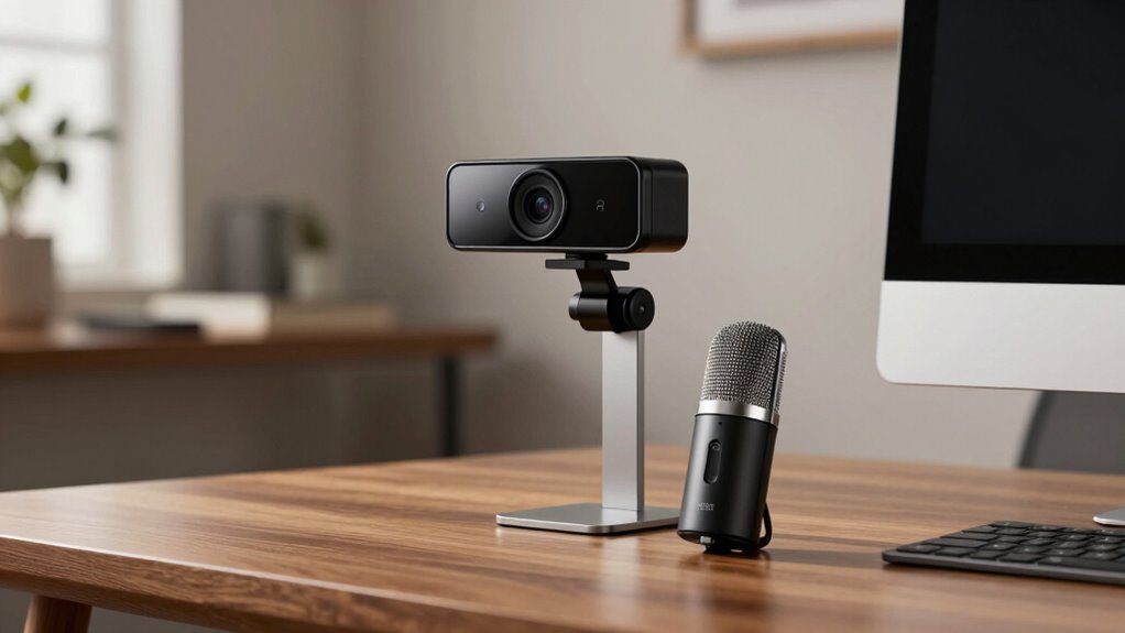 When selecting a premium webcam and microphone bundle, I focus on video resolution, audio clarity, compatibility, privacy, and ease of setup. These factors guarantee I get the best quality and security for my needs without hassle. Let’s explore how each point influences choosing the right bundle.